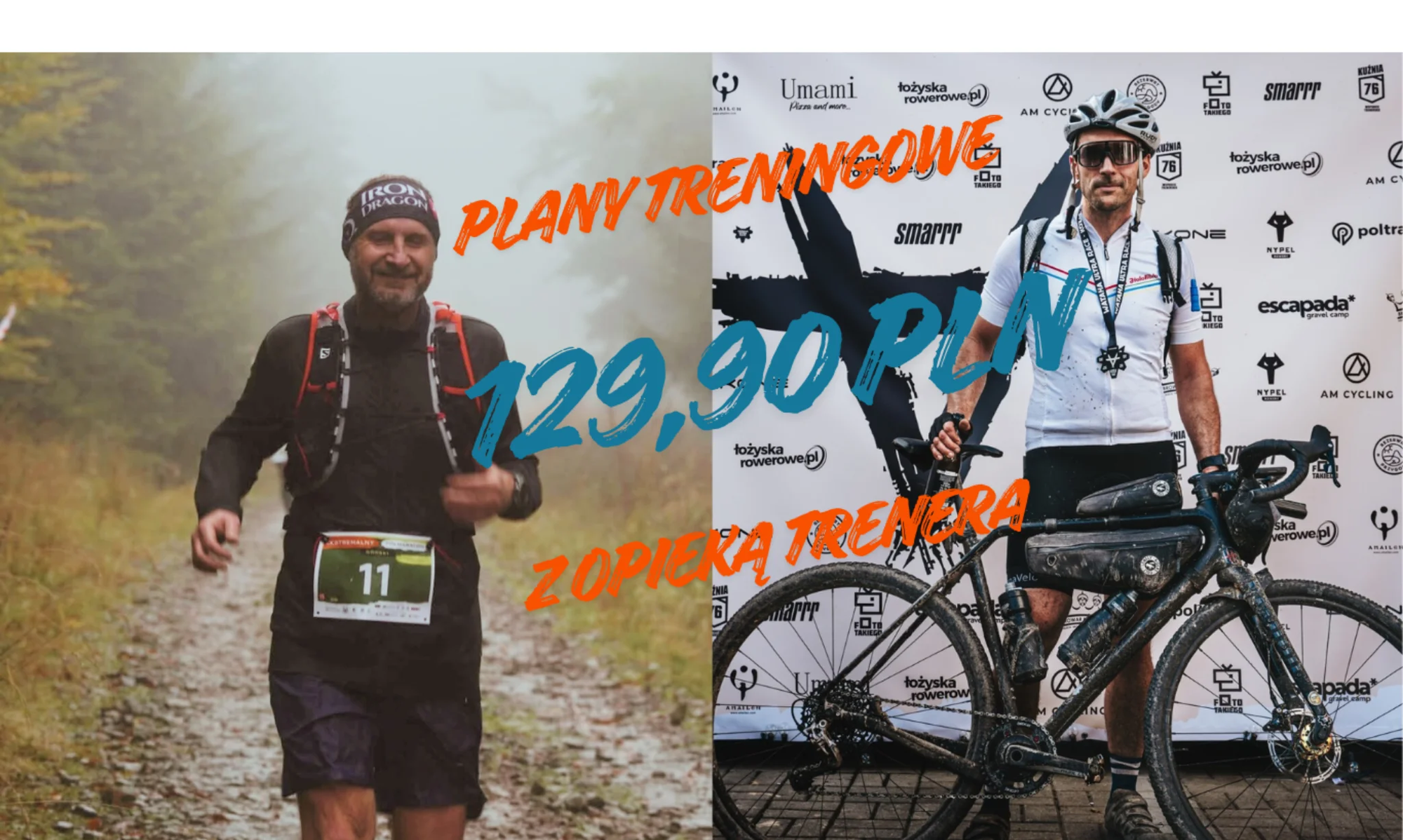 Łukasz i Jarek - trenerzy przygotowania motorycznego z 25 letnim doświadczeniem. Na końcie setki ukończonych maratonów biegowych, MTB, gravelowych ultramaratonów, wyścigów szosowych, biegów ultra i górskich oraz startów w Ironman 70.3. Nasi podopieczni zajmowali miejsca na podium w swoich kategoriach wiekowych w różych dyscyplinach. Poprowadziliśmy także zawodniczkę do wicemistrzostwa Polski w NW w jej kategori wiekowej. Nasza praca skupia się na osobach zaczynających swoją przygodę ze sportem, oraz z ambitnych amatorach. W Waszych planach staramy się pogodzić sportową pasje z życiem prywatnym i zawodowym.